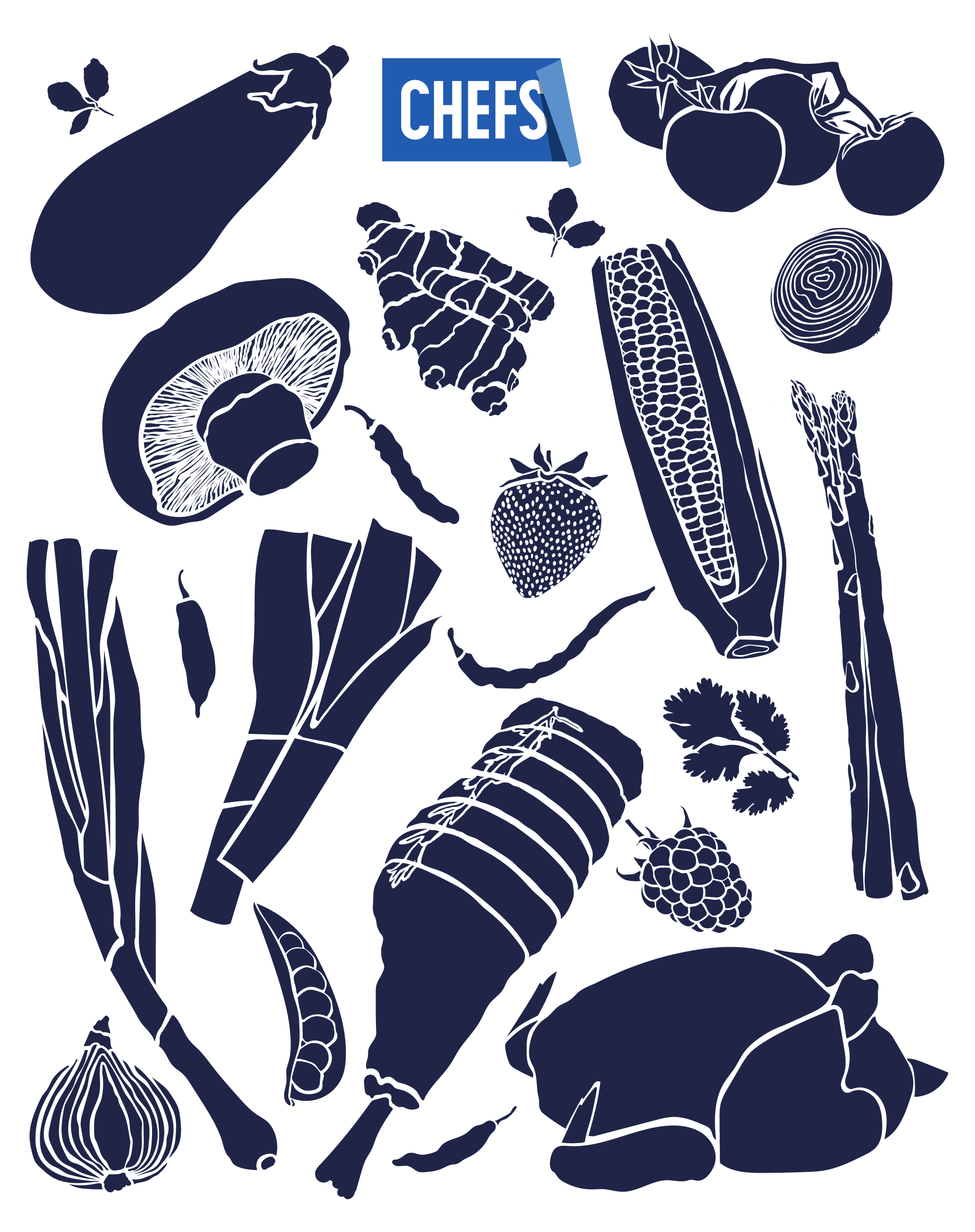 Inspired by the common practice of using handwritten labels in kitchen storage, the CHEFS logo was designed to reference this system of organisation. Head chef Jenny Ward’s preference for blue masking tape informed the colour palette, creating a simple yet striking visual identity that reflected the restaurant’s off-the-cuff approach to food and deep respect for kitchen professionalism.