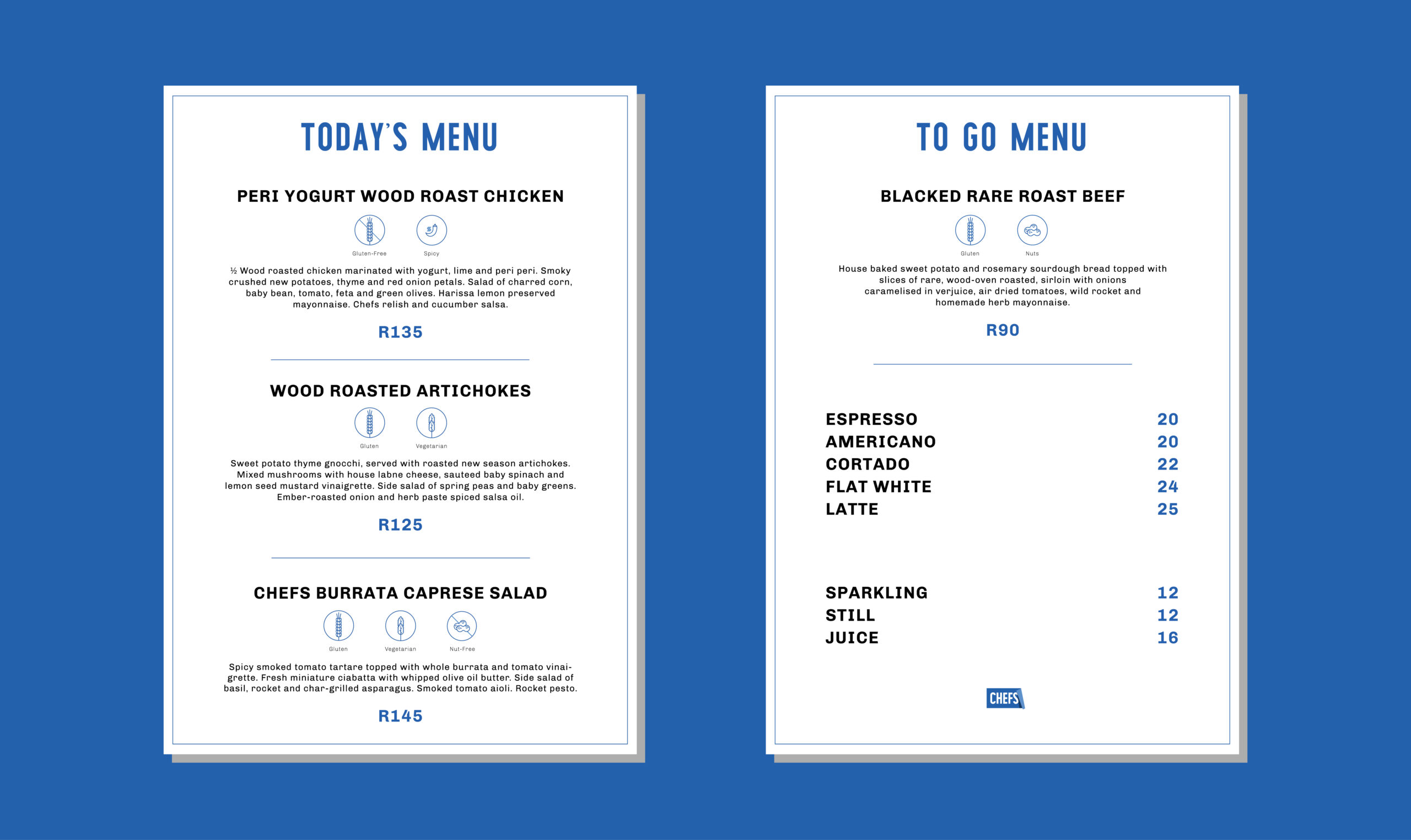 The CHEFS journey began with a conversation about Lucky Peach, the rebellious food magazine by celebrity chef David Chang. This mutual appreciation sparked an invitation from a friend to workshop and develop the brand for a new restaurant concept in Cape Town – one where qualified chefs would lead every aspect of the operation through clever use of tech and a no-nonsense approach to food.